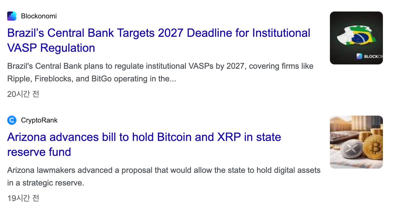 XRP는 제도권이 '인프라'를 규제 틀로 편입시키는 접촉면에 있습니다. 리플이라는 기업이 기관 간 결제 네트워크를 운영하고 있고, 브라질 같은 국가가 이 종류의 사업자를 규제 프레임 안에 넣기 시작한 것은 XRP 생태계가 '회색지대'에서 '규제된 영역'으로 이동할 수 있는 경로가 만들어지고 있다는 뜻입니다.