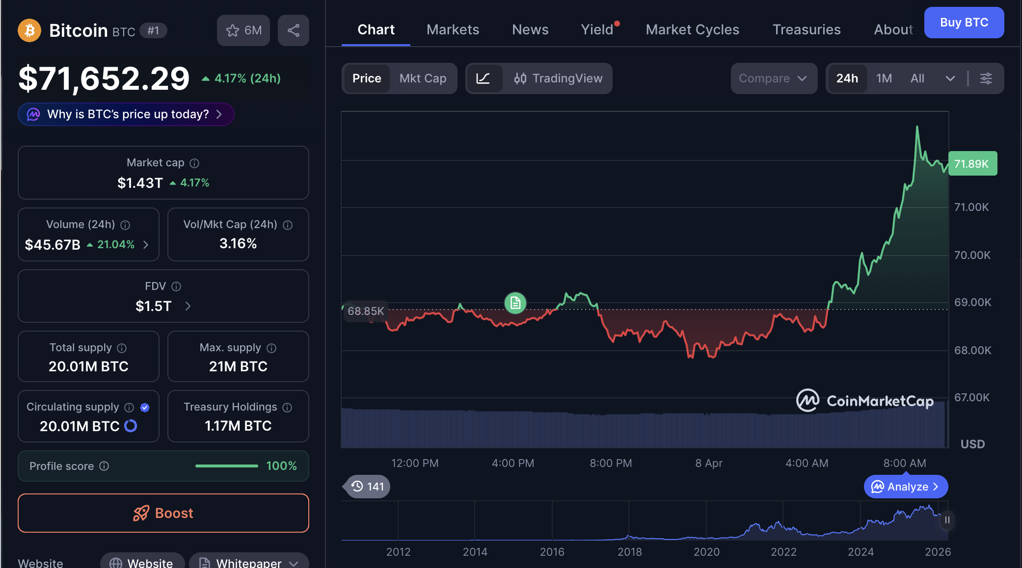 CoinDesk는 휴전 협상 보도와 위험선호 회복 기대 속에서 비트코인이 반등했고, 2억7000만 달러가 넘는 숏 포지션 청산이 발생했다고 전했다. 실제로 비트코인은 7만 1천 달러 위로 올라서며 나름의 반등세를 선명하게 확인해주고 있다. 이 대목의 핵심은 "BTC가 강해서"가 아니라, 시장이 지정학 리스크 완화에 반응할 때 가장 먼저 쓰는 버튼이 BTC라는 점이다.